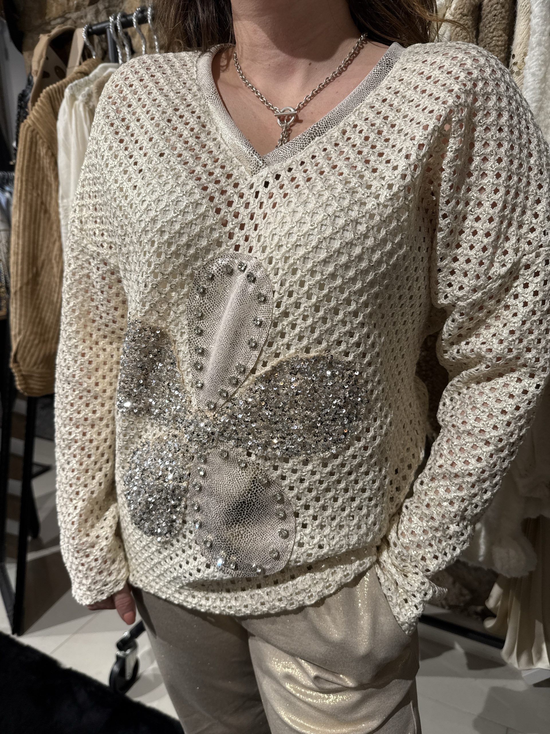 • Design original : T-shirt ajouré avec un imprimé floral orné de détails brillants.